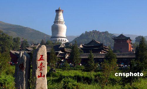 五台山保存了许多珍贵的古代建筑、雕塑、壁画等文物,是一个古建筑群集中的名山。中新社发 孙清华 摄