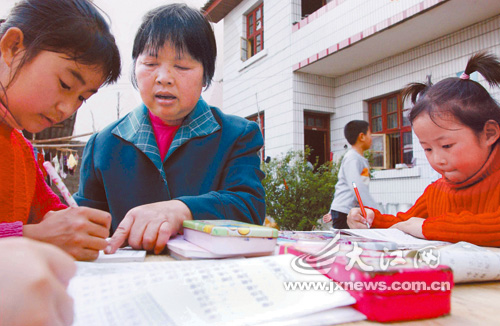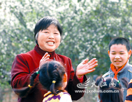 王金莲今年56岁,原赣县沙地镇中心小学语文教师。1995年一个偶然的机会,她托管了几名留守小孩,从此,留守孩子越来越多,她成了266个留守孩子心中的“母亲”。孩子们告诉记者,他们在这里生活得很愉快,平时“妈妈”不仅会照料他们的起居,而且会开展打球、跳绳等活动。沙地镇沙地村新田村小组11岁的留守女孩刘敏说,去年9月1日她加入这个大家庭,短短半年,她就长胖了5公斤。