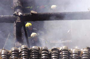 上午10点30分左右,记者在现场看到,事发院内浓烟滚滚,附近挤满了围观居民。上午11点30分左右,大火被扑灭。火灾现场有4间房屋被烧得只剩下框架,院子中遍地都是焦黑的砖头。