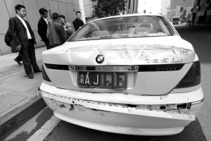 据宝马司机的朋友介绍,这辆崭新的735Li白色宝马上路才一个月,“当时车子正停在路上等红灯,‘砰’的一声后,车子就被撞得滑过了斑马线,幸好没有伤到过路的行人。”这位男子郁闷地说,因为车子还没有来得及上保险,他只能找当事司机理论,“那位驾驶员看撞到车子,竟然想跑,还好被交警给逮住了。”