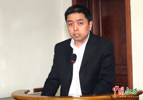 江西省通信管理局党组成员、副局长卢卫在会上发言介绍江西省互联网发展情况。(中国江西新闻网记者 邓小勇 摄)