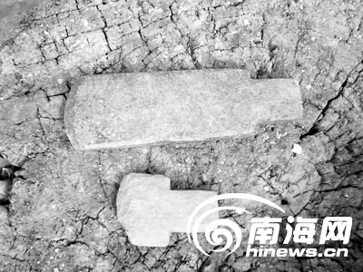 五指山市毛阳镇牙力村村民王先生拨打本报热线称,3月21日中午,他前往住在方上村的姑丈家做客时,无意中发现姑丈家家里陈设着一些造型怪异的石器,一共有3件,大小不一,呈扁平状,类似石斧。