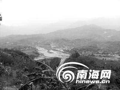 方上村位于海榆中线上,距离五指山市区大约30公里。一路上均是盘山路,比较难走,记者一行大约在2点30分才抵达方上村。方上村坐落在半山腰上,是个小村庄,四周环山,不远处是昌化江,风景秀丽。