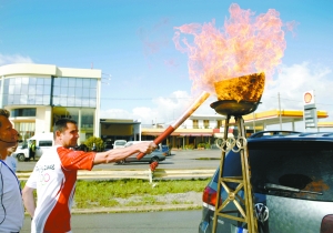 圣火传递途中遭遇堵车