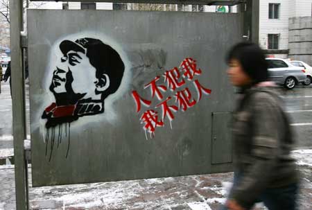 毛主席头像涂鸦现身长春街头 记者 张新宇 摄
