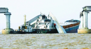 7000吨货轮撞上舟山宁波间在建跨海大桥