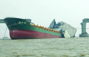 让海事部门担心的是,由于事发海域水流较急,被压在桥面下没有下沉的货船会因为潮差和急流与残留的桥墩发生二次碰撞,当务之急是尽快将出事船只转移到安全地带。