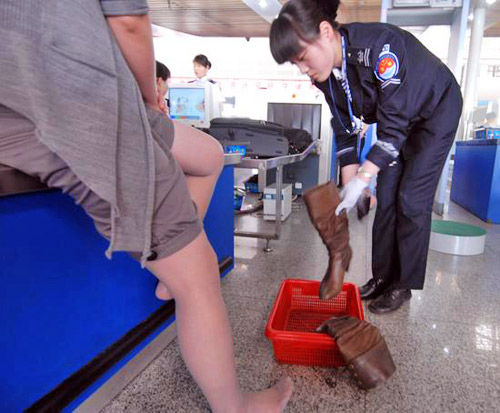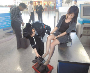 西安机场要求旅客“脱鞋安检”(组图)