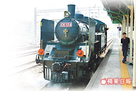 CK124蒸汽火车头昨天试运行后,停靠在大甲车站。