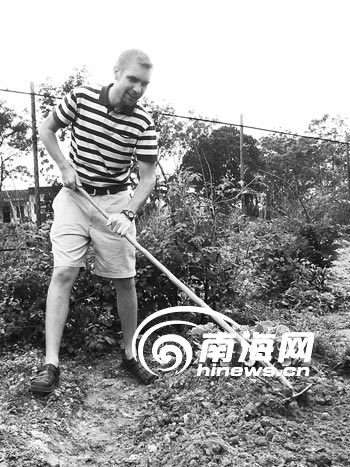 肖恩好奇心很强,他看教职工的一些家属在教师公寓前的空地种菜。也跟着学种菜。由于不懂管理,种了三个来月,菜长势一般,至今没能吃上自己种的菜。肖恩不好意思地说,以前没有种过菜,只是想体验一下不同的生活。