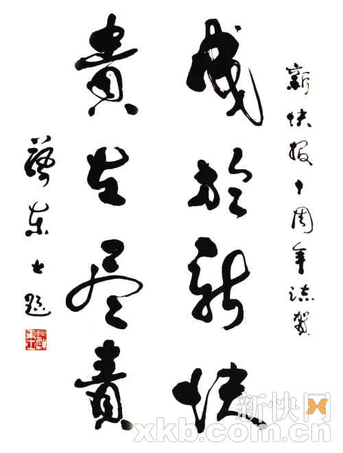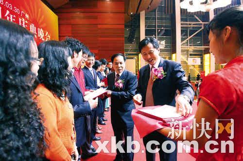 而来自广东各界人士的一份份真诚贺文也让整个庆典充满了浓浓暖意——广东省人大常委曹淳亮笔录鲁迅诗为《新快报》贺十岁生日:“回眸时看小於菟”;广东省记协主席、暨南大学新闻与传播学院院长范以锦赠言《新快报》:“竞争中成长创新中发展”;广东省文联主席刘斯奋题辞赠予本报:“八方云会,一纸风行”;中科院院士钟南山也送来寄语:“既新又快的信息传遍千家万户”;广东省新闻出版局党组书记、局长朱仲南对本报寄予厚望:“当时代前行的推动器”;原广州军区副司令员周玉书老将军也欣然题字:“知情就是力量”……