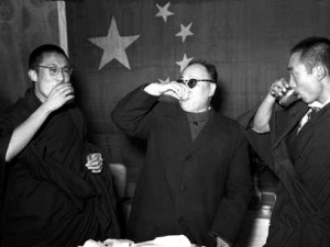 好景不长,1956年的冬天,达赖喇嘛和班禅喇嘛应邀到印度参加释迦牟尼涅■2500年的纪念活动,而这里有一些主张独立的西藏前官员们。达赖喇嘛的两个哥哥也在这里,从一开始他们就包围了达赖喇嘛,不断劝说他留在印度。