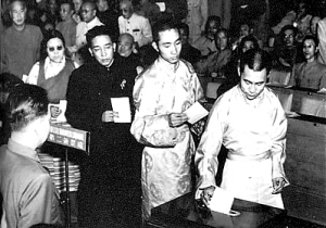 第一次全国人民代表大会上,十四世达赖喇嘛和十世班禅在投票。