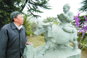 南京九华山公园的十二生肖文化园近日正式开园。“画龙点睛”、“苏武牧羊”、“玉兔捣药”等根据成语、历史故事和民间传说制作的十二组生肖石雕文化气息浓厚,吸引了不少市民前来观赏。图为市民在文化园内观赏“牛角挂书”生肖石雕。 新华社发