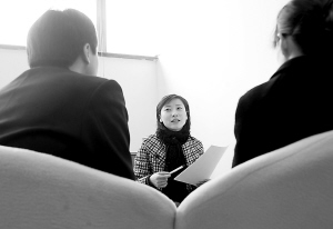 图为心理咨询师在进行离婚调解。本报记者 邵剑平 摄