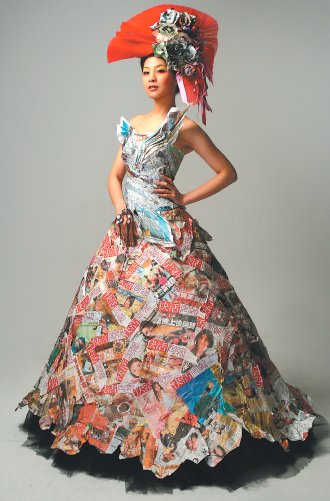 台设计师用100张报纸制成蓬裙大礼服(图)