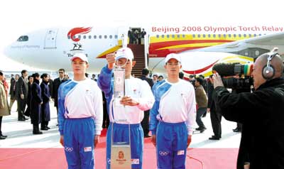 据国航党委书记谭植洪介绍,为了更方便运输圣火,国航“奥运圣火”号飞机内舱进行了改装,改装后的空客A330-200更加宽敞。