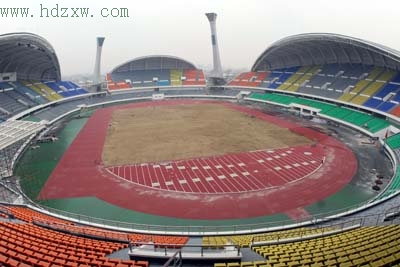 而体育场内的400米塑胶跑道是由国际田联指导施工,符合国际单项田径比赛要求。