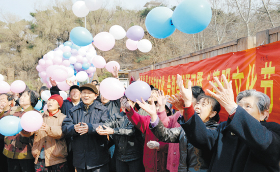 天空中,飞起400只五彩的气球。这是万莲街道大万莲社区的居民放飞的,期望它们能高高飞去,向已逝的亲人讲述自己无尽的思念。