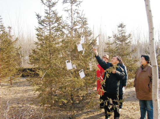 每个信封的最上面都剪裁了一个方形的洞。“这样就可以在信封上写上名字,然后挂在松树上。”有人笑称松树和邮筒都是绿色,这些挂在树上的信,已故亲人们一定会收到,读到。