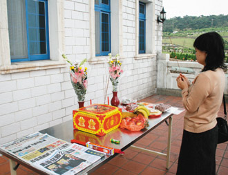 明天是清明节,台军将士遗族连日来纷纷到“台军示范公墓”扫墓,有人将马英九、萧万长“大选”获胜的报纸供上,告慰先人。很多遗族表示,他们将在5月20日马英九宣誓就任台湾地区领导人后,马上向台当局防务部门申请“旌忠状”。(章潘)