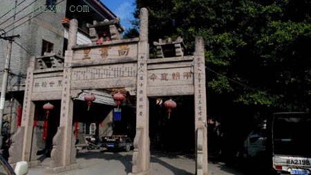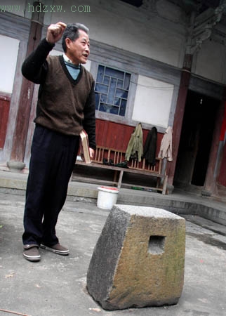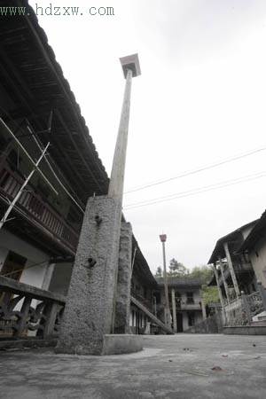 在旗杆厝里,有一块60厘米高的秤砣。詹亿运介绍说,这就是清光绪年间御赐带刀侍卫詹绍安的练功石,它有180公斤重呢。门厅上悬挂“钦点御前侍卫府”竖匾。而在大门前,分别立着两对相同的碑石,在石质的旗杆碑碣上分别刻着立碑主人所获功名和立碑时间。