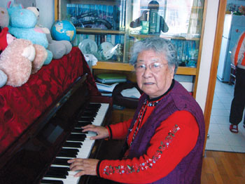 陈老太今年81岁了,从小学一年级开始就学习绘画,因为喜欢小动物,所以大部分的画作都是小动物。在陈老太的家里,记者看到墙壁上挂着她最近一段时间的作品:有打鸣的大公鸡,有横卧山林中的老虎、还有正在开屏的孔雀,都栩栩如生。另外,从上初一开始,陈老太就开始学习钢琴。现在,陈老太还坚持每天都弹钢琴,她还特意为记者演奏了一段邓丽君的《小城故事》。