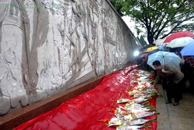 不少市民前往厦门烈士陵园浮雕长廊献上一束花