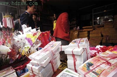 老板林某称,这些货都是从外地进来的,他们卖两元一打,销量还不错。随后,泉秀工商所执法人员没收了两塑料袋冥币。