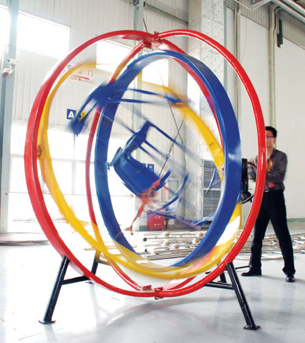 现场的工作人员说,这种训练是宇航员必须经过的基础一关。“坐在上面旋转,能体验到失重一样的感觉,天旋地转。勇敢的市民可以来亲身感受一下。”
