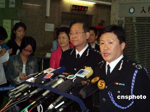 资料图:中国国务院三月二十八日公布,根据香港行政长官曾荫权提名和建议,任命现任入境事务处副处长白韫六升任处长,他将于四月七日履新。同日,现任处长黎栋国开始退休前休假。图为黎栋国和白韫六(右)下午会见新闻界。中新社发 黎金良 摄