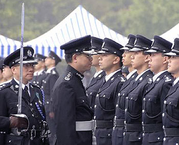 即将卸任的香港入境事务处处长黎栋国,以检阅官身份,主持学员结业暨处长荣休会操。(图片来源:香港特区政府网站)