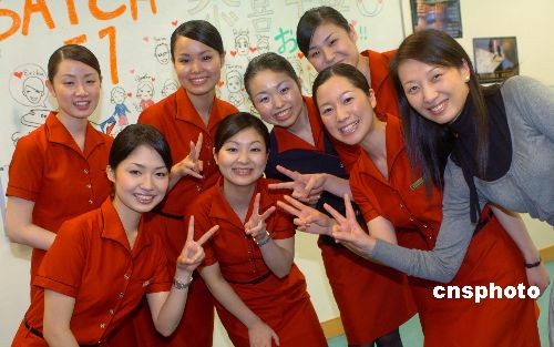 自从澳门航空开通澳门-大阪正班航线以来,为了向越来越多的日本乘客提供优质服务,澳门航空去年十一月首次在日本招收乘务员。经过严格考试,日方中介机构推荐的百名有志于航空服务业、有一定英文基础的应聘青年人中,有九名日本女性成功入选。