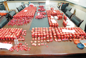 图为警方在制证窝点收缴的千余枚假公章