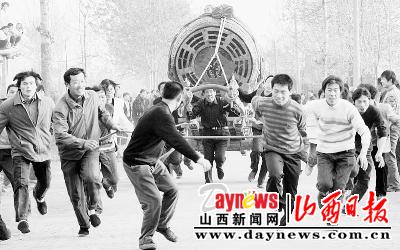 襄汾县南高腴村举办跑鼓车比赛(图) 山西新闻网 山西新闻网官方账号 2008.04.1006:44 关注 山西新闻网 山西日报 4月8日,襄汾县十里八乡的万余村民聚集到南高腴村观看跑鼓车比赛。鼓车分为南、北两队,以接力的方式进行比赛,这一古老的民俗活动成为清明节期间的一大亮点。 张跟慧 摄