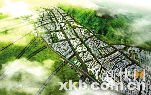 该方案将城市高度和建筑体量集中在南北向延伸线的轴线上,通过设计标志性的形状或规划特殊建筑与高层建筑标志出来,形成一座城市皇冠,核心区在南北方向呈现有坡度的山麓状。机场高速公路是白云新城重要的动态视线通廊,在东西走向上,从外部、尤其是从高速路看去,白云新城所呈现出的未来形象是:大型绿地、建筑体,山地轮廓线所形成的整体和谐景观风貌。
