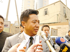 昨日下午1时30分左右,陈良宇辩护律师高子程到达法院,媒体记者立刻蜂拥上前争相发问。高子程在回答了媒体数个问题后,便拨开人墙,一路小跑快速进入法院。