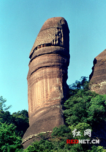 红网长沙4月15日讯(记者 喻向阳)想要去瞧瞧大自然生长的男性器官是个什么模样吗?那就去广东韶关丹霞山:它高28米,直径长7米,此石称“阳元石”,号称“天下第一奇石”。此外,丹霞山风景区里还有一块“阴元石”,其形状、比例、颜色貌似一具扩大了的女性器官解剖模型。