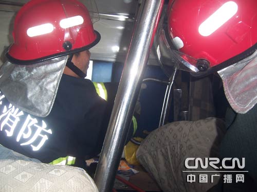 怀宁消防大队官兵在抢救被困驾驶员