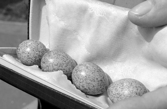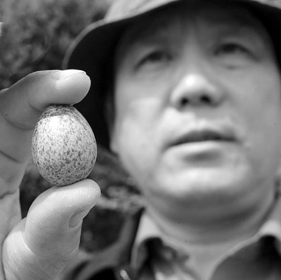就在工人们准备拆除塔上的鸟巢时,却意外地发现里面有4枚鸟蛋。在刘工程师的眼镜盒里,记者看到了那4枚鸟蛋。鸟蛋比鸽子蛋略大,蛋壳呈绿色。
