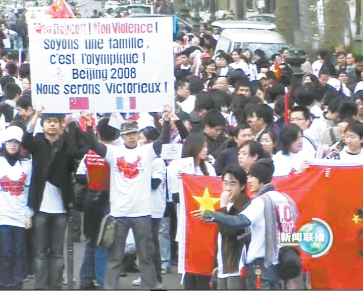 昨日18时—22时,法国学侨界在巴黎共和国广场举行以“支持北京奥运,反对媒体不公”为主题集会。