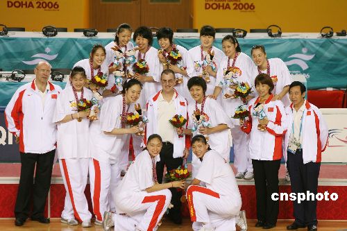 中国女篮多哈亚运会夺金合照全家福。中新社发 毛建军 摄