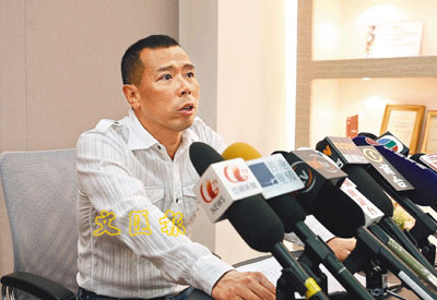 香港“白花油王子”颜福伟召开记者会,就非礼两名的士司机事件向市民及受影响人士道歉。(图片来源:文汇报)