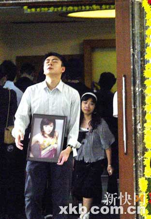 昨日中午,谭静的追悼会在银河公墓举行,谭静的同学拿着遗像神情悲伤。许都/摄