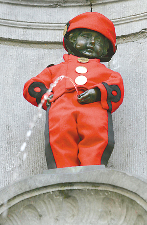 “撒尿小孩”换新衣 华龙网-重庆晚报 2008.04.2202:10 关注 4月21日,在比利时首都布鲁塞尔,著名的城市标志“撒尿小孩于连”的雕像被换上漫画人物斯皮鲁的衣服,以庆祝比利时漫画杂志《斯皮鲁》创刊70周年。 据新华社 网络编辑:王敏