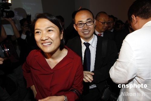 4月21日,由凤凰卫视行政总裁刘长乐率领的“陆港房地产企业家台湾考察团”一行九人(凤凰卫视董事局主席、中城乐天房地产开发董事长刘长乐、SOHO中国主席潘石屹和执行长张欣、广州富力地产董事局主席李思廉、北京万通地产董事局主席冯仑、雅居乐地产CEO陈卓贤、棕榈泉控股公司董事局主席曾伟与执行董事杨蓉蓉、建业地产董事长胡葆森),抵达台北开始展开四天三夜考察行,当日考察团参观台北内湖科学园区。这支考察团访台行,在台湾曝光后,台湾各企业主都极力争取和这些大陆贵客简报与之合作机会,虽然考察团行程只有四天,但带来的巨大商业潜力,已为台湾房地产市场注入强心剂。图为潘石屹夫妇。中新社发 杜洋 摄