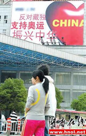 长沙街头悬挂反对藏独支持奥运广告(图)