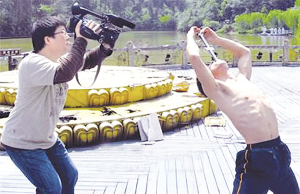 把台球大小的钢珠吞入喉中再吐出来,将约50厘米长的不锈钢宝剑吞入腹中……24日下午,曾制作出风靡中国的电视剧《大长今》的韩国广播文化公司电视台(MBC)摄制组来到峨眉山拍摄神奇的峨眉武术时,被眼前震撼的峨眉硬气功彻底折服。