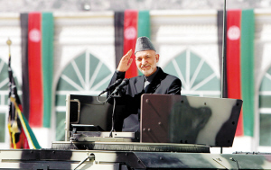 阿富汗方面为庆祝抗击苏联入侵胜利16周年而举办这场阅兵式,卡尔扎伊等阿各界政要以及美国驻阿大使、美军高官均出席仪式。