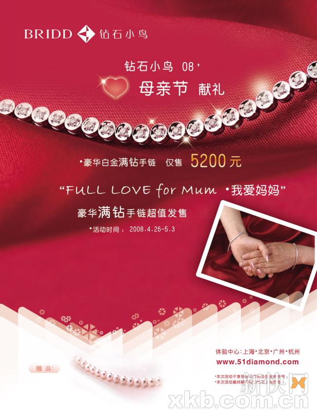如果这样说呢?在那个特定的一天——既不是母亲的生日,也不是母亲生你的日子——就那样一个五月里的阳光明媚的星期日,给母亲献上一份特别惊喜,怎么样?相信你也会认同,那么,你的礼物准备好了吗?不用犹豫,钻石小鸟已经为你准备好了母亲节的神秘礼物。